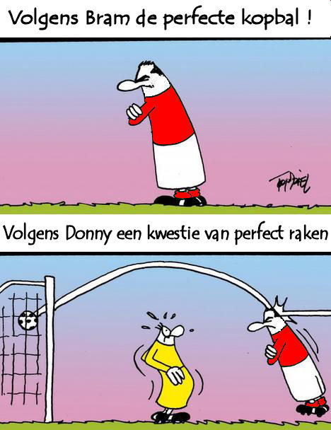 Deze zondag moesten we wederom een uitwedstrijd spelen, nu tegen GVA 4 uit Doornenburg. Dit was blijkbaar voor veel chauffeurs een (IJssel)brug te ver, maar uiteindelijk wisten we ons met dertien personen toch in drie auto’s te proppen en waren we dan ook heel blij dat Jordi deze zondag niet aanwezig was. Nadat we de dijkencross zonder kleerscheuren doorgekomen waren arriveerden we op tijd op Sportpark de Vijzel. Aangezien de afmeldingen, ondanks het goede weer, bij Willem blijven binnenstromen had hij voor deze zondag een blik jeugdspelers opengetrokken. Op doel de jonge Kyan, die hij nog net voor de neus van het 3e en 1e elftal had weggekaapt. Kyan nam de plaats in van de geblesseerde Baco Ari, die echter ’s middags weer hersteld was en als tweede keeper op de bank zou plaatsnemen bij de thuiswedstrijd van het 1e elftal (?). Onze voorhoede bestond uit twee jonge, zeer snelle buitenspelers Linus en Jens, aangevuld met onze senior Michiel, die vroeger ook best snel was. Witheet was blij dat Baco Ari de taken van Jordi wilde overnemen, maar vond dat hij dat wat te letterlijk nam, hij zag hem alleen maar eten. Jordi kan dan ook eten wat hij maar wil, die wordt maar niet groter. Teun had voor de wedstrijd in de kleedkamer even goed gebruik gemaakt van het toilet maar kwam er, vooral voor ons, te laat achter dat er wel papier was maar geen pleeborstel, andersom was dat vervelender en pijnlijker geweest. Willem Wartaal en Kees Kramp mochten beiden op de reservebank plaatsnemen, misschien kwam dat omdat ze die ochtend thuis voor dezelfde voorbereiding gekozen hadden. In de eerste minuten kwamen de backs van onze tegenstander er snel achter dat ze een zware wedstrijd tegemoet gingen, Linus en Jens waren regelmatig veel te rap voor hun directe tegenstander en het was dan ook een kwestie van tijd voordat dat tot resultaat zou leiden. Linus kon alleen met een overtreding afgestopt worden en Donny legde de vrije trap feilloos op het hoofd van de geheel vrijstaande Bram die zuiver binnenkopte (0-1). Als laatste man, bracht hij zijn doelpuntentotaal zo op twee, dat zijn er twee keer zoveel als onze spits Jelle, die afwezig was en nu vooral bezig is met het verbeteren van zijn traptechniek.